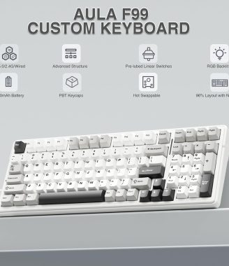 • Sale! AULA F99 Wireless Mechanical Keyboard,Tri-Mode BT5.0/2.4GHz/USB-C Hot Swappable Custom Keyboard,Pre-lubed Linear Switches,RGB Backlit Computer Gaming Keyboards for PC/Tablet/PS/Xbox